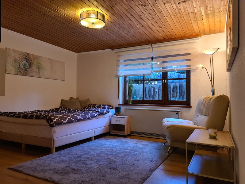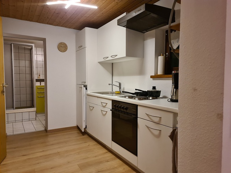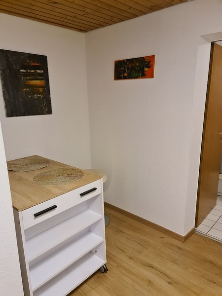 Wohnung möbiliert mit Küche, Bad und Eßplatz.